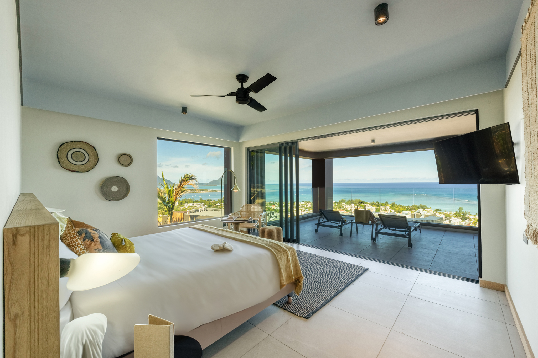 Spanning 136 m² of absolute perfection, enhanced by a breathtaking 180° panorama overlooking Le Morne Lagoon, these spacious rooms provide an ideal setting for a luxurious and supremely comfortable retreat.